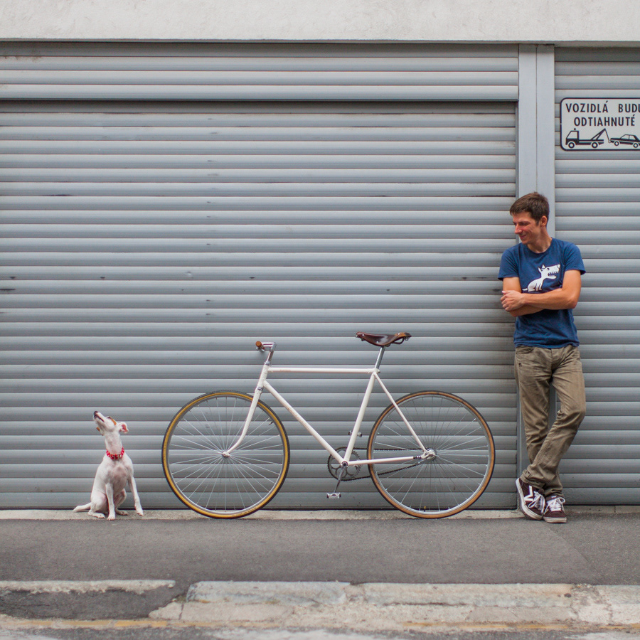 friend repair his old bike. Here it is with him and his dog.